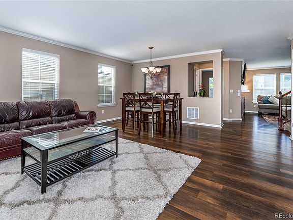 Stunning 2-Story in Bear Creek Meadows with 3-car garage! Bright and airy. Beautiful, wide plank flooring throughout. Open, functional floor plan. Incredible kitchen with top end finishes. Granite counters, upgraded cabinets, stylish backsplash and stainless steel appliances. Large eating space that leads to the covered deck, perfect for entertaining. Spacious family room with gas fireplace. Cozy up to your favorite movie or watch a ball game. Large, inviting entry leads you to the open concept living and dining rooms. Beautiful crown molding throughout the main level. Updated lighting. 4th bedroom/study and 3/4 bath round out the first floor. Huge master bedroom with 5 piece bath. Gorgeous granite counters, upgraded cabinets and title shower. Custom walk-in closet system. Large loft space/bonus room great for play area or second living space. Spacious secondary bedrooms. Full secondary bath. All upstairs bedrooms with ceiling fans. Almost 800 square feet of unfinished basement ready to be finished to buyers liking. Lovely backyard with covered deck. Great street appeal. Easy access to highways, shopping, parks and entertainment. Awesome home!