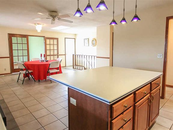 Spacious 3 bed, 3 bath home in Douglass! This home comes with over 4 acres of land with 2 out buildings. One is 30x42 100 amp service with a fuel oil furnace. The other is 10x20. There is an underground salt water swimming pool that is fenced in. It comes with an automatic solar pool cover & Polaris pool cleaner. The upstairs has a very open floor plan and is flooded with natural light. The kitchen has a large island with storage underneath. All appliances stay; they're stainless steel. Nice sized bedrooms. The master has an en-suite. The living room has beautiful window seats and french doors that lead to a closed in sun room that overlooks the pool. There is main floor laundry (washer and dryer stay) The basement is fully finished with an additional bathroom and a wet bar!. The home is 20 minutes to Derby, 25 minutes to Wichita. You will appreciate the lower energy costs due to closed loop ground source geothermal heating and air conditioning. There is also a hedge row for wind protection. Call today for your private showing!