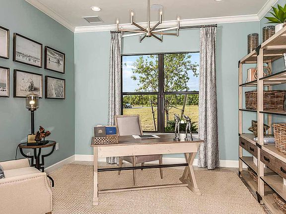 The Lazio is one of Taylor Morrison's most popular floor plans. This home has so much to offer with 2,275 sq. ft. of living space, 3 bedrooms, 3 full baths, a study and two-car garage. Enter the home though the foyer which leads into a dining room and spacious great room. The designer kitchen with large island overlooks the gathering room which has a sliding door leading to a spacious lanai, perfect for outdoor living. The Owner's Suite includes dual sinks, large shower, water closet and large walk-in closet.