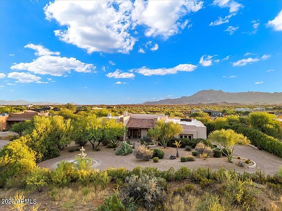Welcome to gated, private luxury in this highly upgraded 4BR, 3.5BA estate w/ 4-Car garage! Has Water! Acreage! Privacy! Horse-Approved Property! Walk to Regional Park! Features spectacular scenic & MOUNTAIN VIEWS only Scottsdale can offer & 2.251 Acres of endless possibilities! This profitable Furnished Vacation Rental can be a Horse Property! Enter thru artisan automatic gate, around stately fountain surrounded by lush foliage & lovely circular pavered driveway. Beautiful open floor plan, soaring 12-14ft ceilings, Turkish Travertine & wood flooring, rough-sawn wood beams & highest quality finishes flow throughout this estate! Through the 8-ft solid knotty Alder doors, enter the foyer. You'll find the inviting and cozy Great Room with its custom stone fireplace & VIEWS of...(CLICK MORE) Resort Yard w/ lush landscaping & putting green. Great Room opens to the gourmet eat-in kitchen features custom stone wrap around peninsula bar, large Island, GE Monogram SS appliances & Granite counters. The master suite includes a cozy gas fireplace, luxe finishes, great views & spa-like bathroom w/ double sinks & soak tub - the luxuries carry into the guest bedrooms & bathrooms. Enjoy the beautiful views from the large balcony or the wonderful backyard oasis, complete w/ large covered patio, dazzling pool & spa, putting green, garden & spectacular 360 views & at approx. 2,600 FT elevation outside the Valley, enjoy the cooler temperatures in the Rio Verde Foothills! This dream estate won't last long! Don't miss out! Find your private haven for your family or for a Furnished Vacation Rental business. Appreciate the BEST that horse-friendly Scottsdale offers! Acreage! Privacy! Horse-Approved Property!