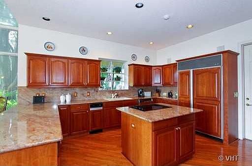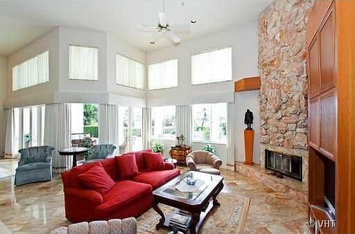 Understated elegant home with endless water views offers casual Florida living at its best. Spacious, light and airy rooms open onto the covered patio to the heated pool with spill over spa. 5 Bedrooms/6.5 baths split plan with very private guest