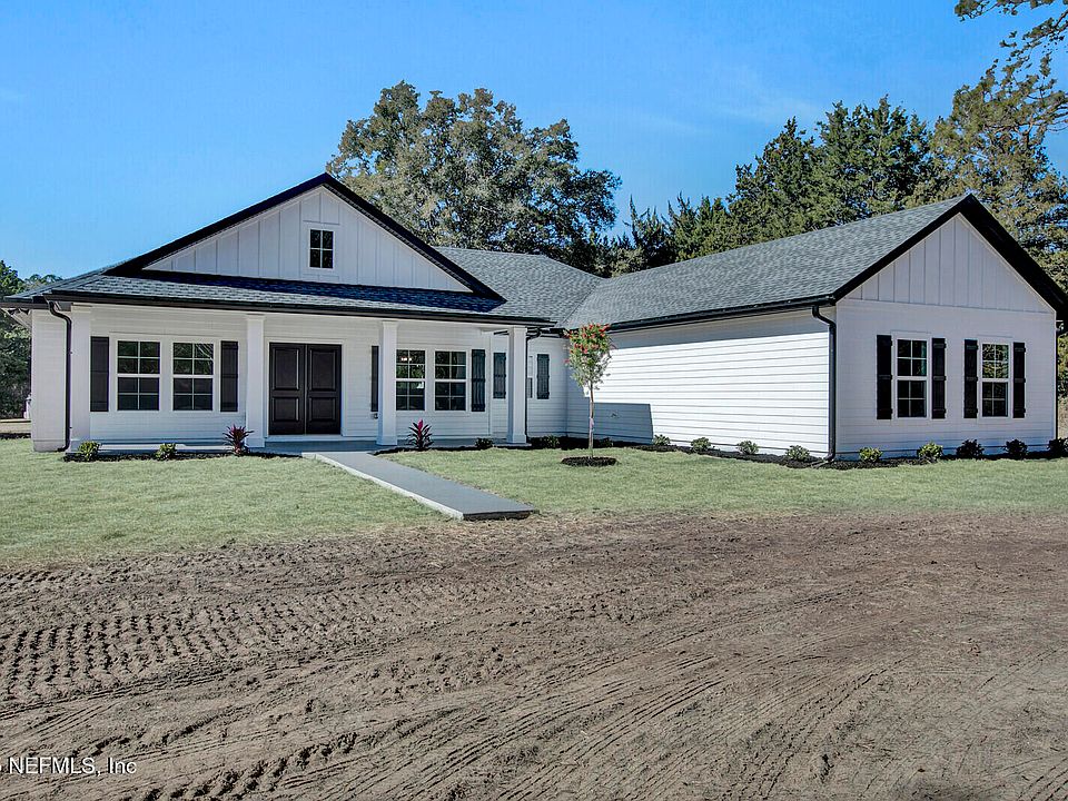Do you want that country feel, yet still close to all your favorite stores and restaurants? Then look no further! Come check out this stunning new construction home built by Eco One Inc. Situated on a generous one-acre lot, this 4-bedroom, 2-bathroom residence is one you do not want to miss. Step inside to be greeted by sleek tile flooring throughout and plush carpeting in the bedrooms. The kitchen is a chef's paradise, boasting with quartz countertops, a large island and a walk-in pantry with butcher block countertops. Entertain guests in the spacious living area, complete with an electric fireplace and vaulted ceilings adorned with elegant wood beams. Retreat to the primary suite, featuring a walk-in closet and a spa-like on-suite bathroom with custom finishes. With no HOA and CDD this home offers the perfect balance of privacy and convivence.