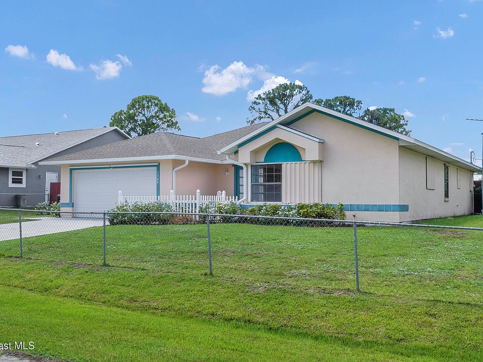 Welcome to this beautifully updated 3-bedroom, 2-bathroom home in the heart of Palm Bay! Freshly painted inside, this residence boasts all-new flooring, fixtures, a modern kitchen, and stunningly remodeled bathrooms. The home features a brand-new roof for peace of mind and a spacious two-car garage. The fully fenced backyard is perfect for outdoor gatherings or a secure play area, with plenty of room for a pool!