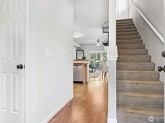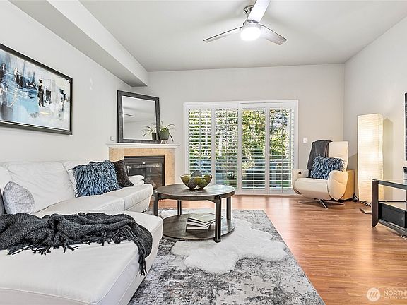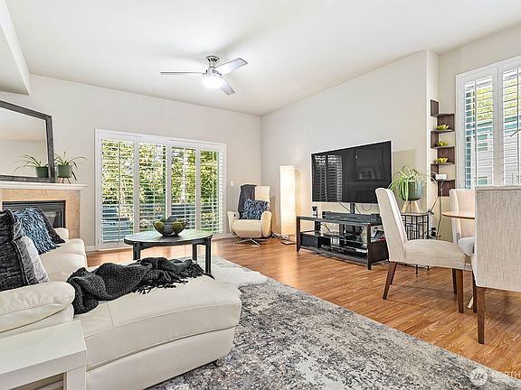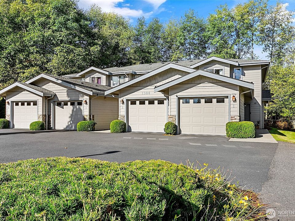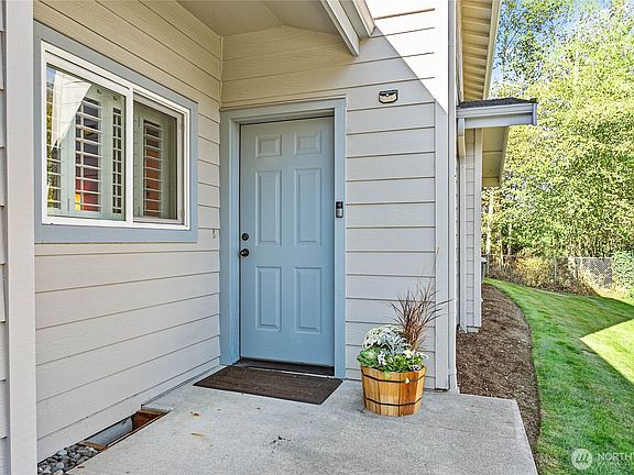 Ideal Blaine location--Corner unit condo lives like a private single family home. Main floor entry to great room with gas fireplace, kitchen with breakfast bar & custom shutters that frame the space. Lots of light streams in the windows on the south side of this home. Two spacious bedrooms with private ensuites offer well-planned storage/closets. Safe & secure entry from single car garage to a small den/office that can also serve a variety of needs. Back patio is peaceful with level side yard. Great neighborhood location in a cul-de-sac. Close to walking trails & the park. Just minutes from downtown Starbucks and I-5 access to the Canadian border. Quite the value--affordable and in excellent condition. Perfect first time home buyer home!