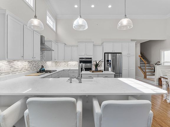 STUNNING like NEW RANCH home in SWEETWATER in Apex! This 4 bedroom 4 bath home features 2366 sq ft Open concept offers Soaring VAULTED ceiling w/Crown molding throughout.Family Rm w/ Gas FP, plantation shutters. Chef's Kitchen w/ ample counter Seating Quartz counter tops upgraded backsplash, Cabinets w/ Under-Mount Lights. Main Fl Primary w/2 Closets, 2 Sep Vanities, Tiled Shower. Main Floor w/2 Bedrooms & Full BA. LARGE 2nd floor Bedroom/Bonus/Office space w/ FULL bath! 2 Garage w/Storage above storage and additional walk in storage on 2nd floor. 2021 NEW Roof and Gutters! See full list of upgrades! Resort like amenities, clubhouse, gym, pool, TEN pocket parks including Playground, Dog Park, Greenway Trail (will connect to Tobacco Trail) + coming soon Sweetwater Town Center offers 45 acre of prop. comm retail &entertainment area.