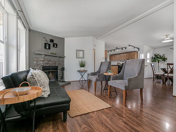 Lovely location. Comfortable and clean manufactured home on own lot with garage and RV parking w/ 220v, no HOA. Alley access. Open floor plan for living, kitchen, and dining. Fenced side yard. Vaulted ceilings, soaking tub, and fireplace. Primary bedroom has extra shelving. Utility room. Has installed SimpliSafe security system included. All appliances included.