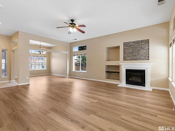 This property has a very unique driveway for ample parking and RV parking. Upgraded kitchen with the backsplash and counters, large breakfast bar and pantry. Beautiful fireplace with a stone inlay. Backyard is private and has new large covered patio to sit back and enjoy the fine Nevada weather. Large side yard would make a great dog run. A new water softener is also included. There is a neighborhood park around corner with volleyball, basketball, nice playground and much more. Tahoe is 45 minutes away., Kitchen cabinets and bathroom cabinets are painted and updated.