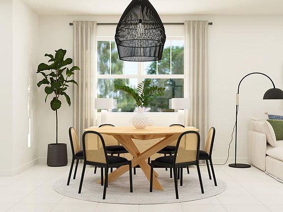 This new single-story twin home is a modern take on a classic design. Its open-plan layout connects the well-equipped kitchen, intimate dining room and Great Room together to prioritize ease of living. Glass sliders lead to an attached lanai. Nearby is the owner's suite with a full-sized bathroom and walk-in closet, while on the opposite side of the home are the remaining two bedrooms and a flex space.