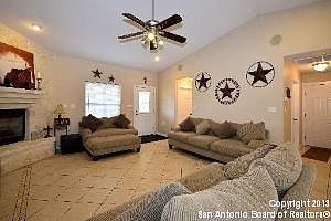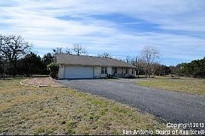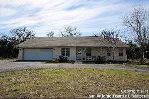 Ask for USDA financing - no down payment and seller will contribute $2,500 for buyers costs. 2 lots totaling 1 acre w/back of .50 fenced with nice above-ground pool (seller will remove if buyer wants). Hill country cutie with white rock exterior. Open plan with rock fireplace and breakfast bar surround. Extensive tile flooring and granite countertops in kitchen. 3 bedrooms plus study and powder bath. Oversized garage. Nice deck. Septic is inspected & serviced quarterly. Water Co. is co-op.