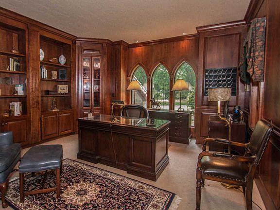 A storybrook winding drive leads to an enchanting 5 bed luxury estate that will take your breath away. The grand foyer w/ custom cut limestone stairway & wrought iron railing greets you inside. 24' ceilings in the great room complete w/ wet bar, cathedral windows & gas fireplace next to the gourmet kitchen featuring leaded glass cabinets, granite and accent lighting, and surround sound define entertaining in style.The 1st floor master with spa-like bath and 4 season room are a true retreat. The LL is perfection with wet bar, home theater and sauna. Every detail for luxury living at its best!