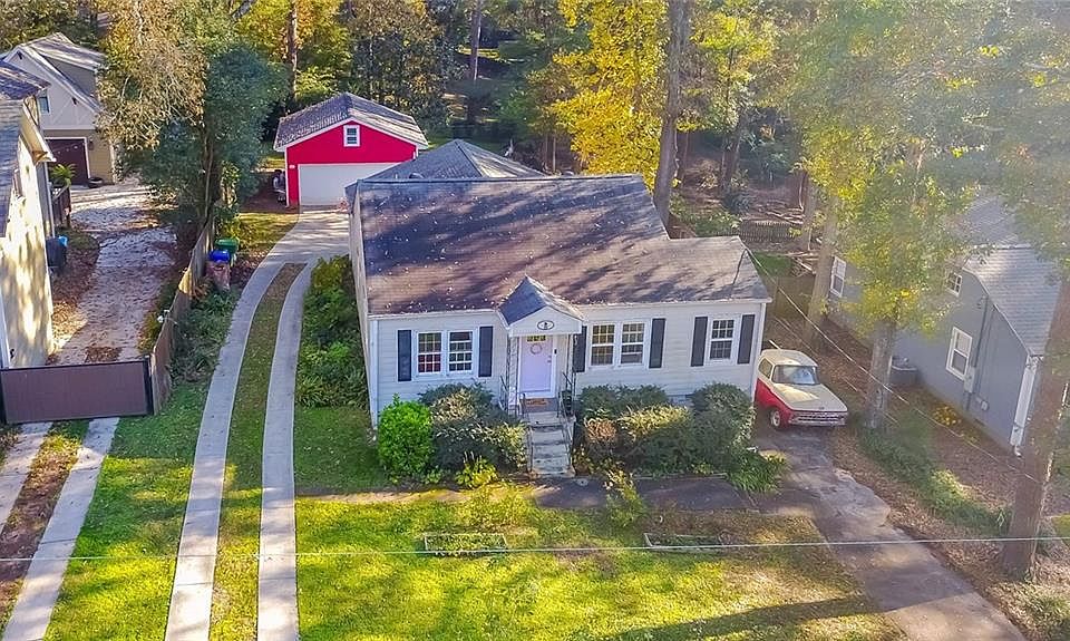 Adorable, yet spacious & renovated, 2 bedroom, 2 bathroom bungalow in Midway woods! Cute, front covered porch leads into an open, bright & airy floor plan that begins with the large living room. Beautiful, original hardwood floors run through out! Off the living room is an additional enclosed porch that is great flex space & could be an office, nursery, gym or guest room. The living room opens into the spacious dining room which includes a cool, new light fixture and west facing windows. Off to the left of the dining room is a small hallway that leads to the owners suite addition, complete with large private bathroom and generous walk-in closet. The roomy & light filled 2nd bedroom and 2nd, hallway, white-on-white bathroom is also on this side of the home. Great & open wall cut-out lets you see straight into the kitchen from the dining & living rooms. Tons of cabinet space, wood counter tops, beautiful slate floor, natural light & new stove make this kitchen a delight! A huge window opening, & a door with continued slate from the kitchen, lead you to the bonus family/sun room off of the back of the kitchen & home. This room is vaulted with huge windows, full of light, & has been completely enclosed with its own ductless A/C unit. A new, retractable storm door separates you from the oversized & landscaped yard, complete with new decking, firepit, lighting & a detached 2 car garage with loft for storage. Hardiplank exterior, attic flooring installed for even more storage space & a driveway on each side of the property for more than ample off-street parking. Museum school eligibility, low unincorporated taxes, convenient to Decatur Square, Emory,I-20/285, nearby bike paths, parks & more.