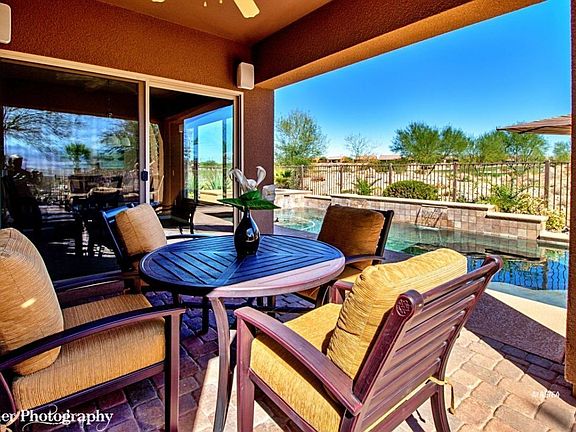 IDEAL SUN CITY VIEW LOCATION! Sought after East facing, large (.2 acre) professionally landscaped pie-shaped lot, located on the Conestoga 10th hole with views of the 9th, 10th, & 11th fairways. Unparalleled views of the mountains to the East and South. Relax in one of the seating areas and enjoy the sound of the cascading Sun City waterfall, the reverse sunsets, & magnificent sun and moon rises. The sparkling pool/spa and stunning fountain enhance the natural beauty of this lot. Close to Sun City amenities. Recent upgrades include 23 panel whole house solar system, upgraded variable speed pool equipment, new hard wired CO2/smoke detection system, new induction range, new drip system that can be controlled by your phone, panel surge protection, sound system, R/O system, and more! Climate controlled 619 SF garage--extended on one side for your extra long vehicle, ATV, or golf cart. Most of the furniture is included with this beauty! The tasteful interior of the home takes its inspiration from the surrounding desert landscape. You will love the flow of this house, especially the separation between the primary bedroom and guest room. Look no further---this is the one!