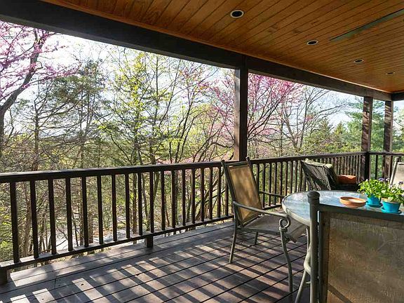Exceptional craftsmanship in this timber frame home. Inviting open floor plan featuring quarter sawn white oak floors, vaulted cathedral ceilings, a stone fireplace and custom library set this home apart. Natural light abounds with large windows with mountain views. Kitchen features custom cherry cabinets from Lantz Custom Wood Working (owner/builder) who has done custom work for area vineyards and the JMU Forbes Center. Master suite is on the main level and a large loft upstairs along with two additional bedrooms. Finished basement with 3rd full bath, additional bedroom, kitchenette & family room. Home is in pristine condition with oversized covered porches and a gracious deck open to the nature surrounding.