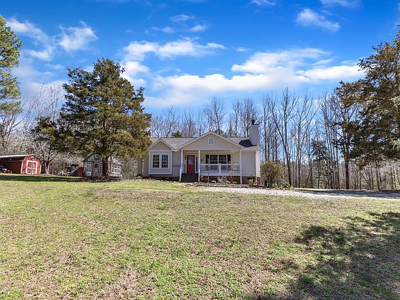 Looking for privacy with no restrictions? Look no further! Come see this charming farmhouse retreat on 4+ Acres! Step into a warm and inviting living room with a wood-burning fireplace, trey ceiling & built-in bookcases & storage. The space flows effortlessly into the eat-in kitchen, featuring a farmhouse sink, stunning lighting fixtures, granite counters & stainless steel appliances. Gorgeous engineered hardwoods run throughout the home for a timeless look. The primary bedroom features a huge walk-in closet, private bath & direct access to the covered deck. Two secondary bedrooms share a full hall bath. The laundry room offers extra storage and a stylish barn door. Enjoy the great outdoors on the partially covered, no-maintenance deck with a louvered roof! The enchanting greenhouse, crafted from restored windows, offers a dreamy escape. Need storage? You'll love the shed & covered storage area for all your farming equipment. There's also ample space for gardening and a chicken coop ready to go! Don't miss this private oasis with endless possibilities!