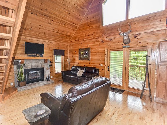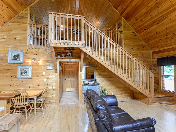 Awesome cabin in Eagle Springs. 2 bedroom 2 bathroom with a custom made loft with 4 twin bunks built into the walls. The cabin has hard wood floors,Air Hockey and Foosball table, hot-tub, full size washer and dryer, custom bar-top in the kitchen. Stained a few years ago. It also is at the end of the road for privacy. Gas log fireplace to warm up by with a digital timer included. Electronic door lock and flat screen TV's make this cabin ready to put on overnight rental or have as a second home. Sold furnished and ready to go.