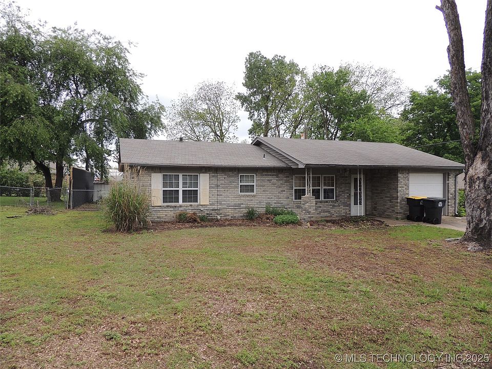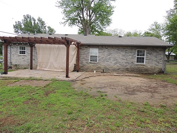 Located in the Village sub of Coweta. Only a few blocks from Country Mart, Atwood's, Roy's Fried Chicken, and many more restaurants and storefronts along OK-51. This well maintained brick home features laminate flooring throughout including 1 bedroom. 2 other bedrooms have carpet. Washer/dryer hookups located inside the single car attached garage. Fully fenced backyard perfect for entertaining, with a pergola atop a concrete patio, there is also a fire pit and storage shed. Previous tenants had an above ground pool and landscaped stepping stones to where the pool once was.