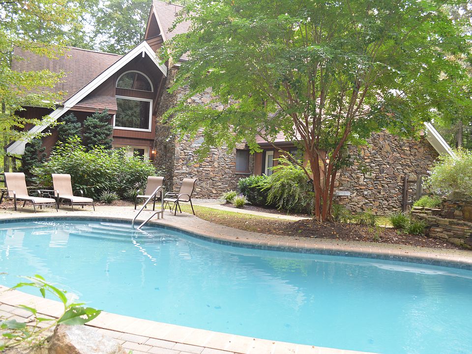 The Tree House as the owners call it, is a wonderful private retreat to come for R&R or to write that famous novel. New carpet first floor. Take the small outboard or kayak and explore the creek as wildlife abounds or take a dip in the pool. Dramatic faulted ceilings and floor to ceiling windows to capture the outdoors. This is just not a home but a lifestyle. Only minutes to an array of shopping.