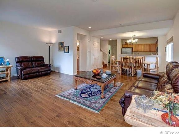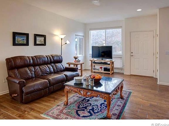 Welcome home! This end unit features a park-like setting right out your front door. Newer hardwood flooring throughout. Newer updates include light controlled mini blinds, garage door, hot water heater, attic insulation, toilets & sink fixtures. Entry welcomed into living room with connecting dining area and large pass through window into kitchen. Kitchen updated with new stainless steel appliances, featuring Bosch stove & microwave. Main floor laundry room with utility sink and shelving. 2nd level complete with master bedroom, open loft & 2 secondary bedrooms with shared full bath. Wrought iron fenced front patio great for barbeques. Enjoy the convenience of being close to Cherry Creek State Park with so many great amenities to enjoy.