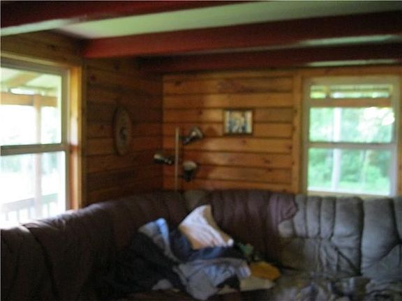 WOW 1248 SQ FT Log Cabin nestled in the woods with 10 acres! This is the real deal! Nice open kitchen, garage is 24 x 24 pole barn, 2008 new roof, 2010 new hot water tank! call appt service for showing allow 24 hrs Pond! HOME NEEDS EXTERIOR LAND SCAPING--fLOOD ZONE! 300+ drive needs stone,