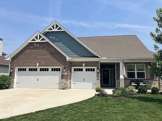 Ranch living, all on one level, yet still room to roam! This low maintenance newer ranch home has 4 bedrooms, 3 baths and a beautiful year-round sun porch– 2,239 square feet of living space. Located in the highly desired Settlement section of Heartland Crossing. If you need something that is move-in ready (finished in 2022) you have found the right place. Large gourmet kitchen with huge island containing the sink and dishwasher, large gas cook-top, double wall ovens, as well as a walk-in pantry. The 3-car garage has extra depth, and the attic has a pull-down staircase with floored storage area. The quality details are evident everywhere, from the gas fireplace to the remote-controlled ceiling fans. The home is located close to the Heartland Crossing Shopping Center with easy access to I-465 via SR 67. Low HOA ($30/month) includes pool; low taxes (under $2,000/yr).