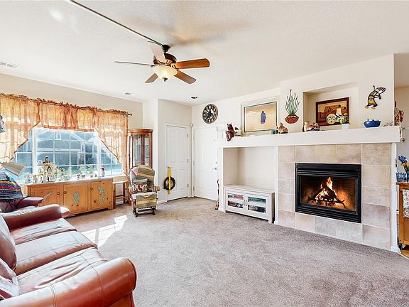 Nestled in the picturesque Broadlands community, this 2-bedroom, 2-bathroom main floor condo offers a unique blend of accessibility and comfort. It has been thoughtfully designed with handicap accessibility in mind, making it an inviting and inclusive space for all. A charming front patio greets you, perfect for sitting with a cup of coffee or using your BBQ. Inside, the living room welcomes you with its generous proportions and a cozy gas fireplace, creating a warm and inviting atmosphere perfect for relaxation and entertainment. The adjacent kitchen is equipped with all the essential appliances, including a refrigerator, stove/oven/range, dishwasher, and microwave. Additionally, a pantry ensures you have ample storage for all your culinary needs. The dining area is located right off the kitchen with a separate door to the front patio. The second bedroom offers versatility, serving equally well as a guest room or a functional home office, depending on your needs. As you retire for the night, the primary suite beckons with its private patio, a 5-piece bathroom, and a spacious walk-in closet, providing a serene and comfortable retreat. The east and south facing windows on this unit floods the space with natural light. One-level living is at its finest in this condo with laundry and a 2 car attached garage plus additional storage. Living in the Broadlands community brings a wealth of amenities right to your doorstep. You'll have access to community pools, perfect for unwinding and staying active, as well as the Broadlands Golf Course, a golfer's paradise that borders the community. In terms of location, this condo is a gem. You'll enjoy easy access to shopping, dining, and entertainment options. Don't miss the opportunity to experience the perfect blend of comfort, accessibility, and convenience at this unit. Schedule a viewing today and make this exceptional property in the heart of the Broadlands community your new home.