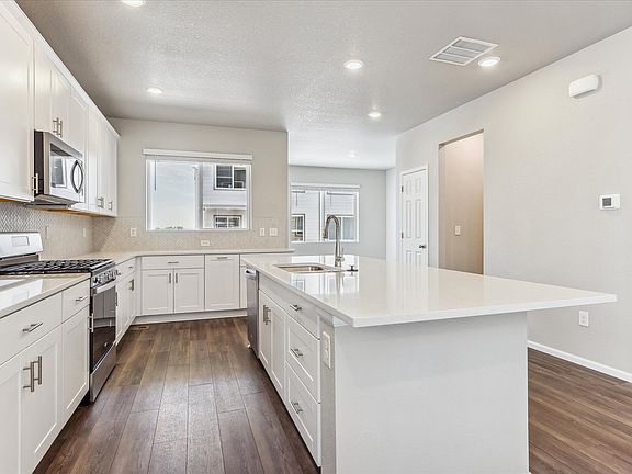 This is a corner unit with easy and quick access to parks and walking trails in the area. Enjoy Colorado life with two decks- one off the kitchen and one huge private space on the top of the townhome with gorgeous views- perfect for outdoor furniture. This unit also has a generous two car garage- keep your cars out of the winter snow!
