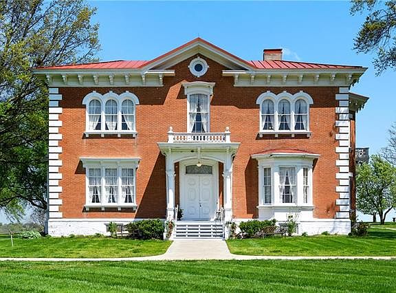 Discover peace and tranquility in this 1850s Italianate brick 26-room home on 10 country acres. Deemed the most intact, unmodified antebellum mansion in the midwest, Linwood Lawn is restored w/ modern kitchen/baths. Bay windows & tall, pocketed casement windows, Detailed plaster frieze molding. Pure Carrera Italian fireplace mantels w/ exquisite carvings.Masterfully hand-carved mahogany newel post, balusters, curved grand staircase. Rich in historical & architectural significance w/ all 14 ft tall ceilings. Ample storage. Wet/dry pantries with spice drawers, bins & pull out shelves. Ascetically pleasing archways, Bedrooms w/ dressing rooms, deep walk-in closets. Brick basement floor w/ 3-6 foot walls. Own a piece of history & make Linwood Lawn home, a wedding destination, or a stately bed/breakfast.