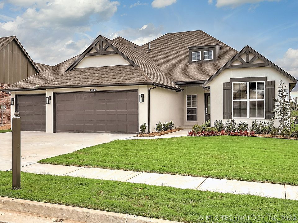Fantastic NEW ranch floorplan offers 3 or 4 bedrooms, extensive wood floors, 3cm granite & Norman custom blinds. HUGE ISLAND KITCHEN w/massive dining, walk-in pantry, 10' ceilings all main lvg spaces, open family room w/corner FP, private master w/stunning curb-less tile shower. Mud bench drop zone, oversize back patio. HERS Energy pkg w/Trane HVAC 16 SEER A/C 95% furnace, radiant roof decking, LowE windows, All LED lights, house wrap, BIB ext wall insulation. Less than 1 mile from NEW Bixby West Campus.