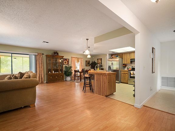 Location is everything! Home on a corner lot in desirable SW area close to I-75 and Ocala shopping and entertainment venues. Garden foyer entry, laminate flooring throughout, open floorplan. Huge natural stone fireplace in living room, island kitchen with newer stainless steel appliances, oversized master suite with walk in closets. Huge screened in patio overlooking private backyard.