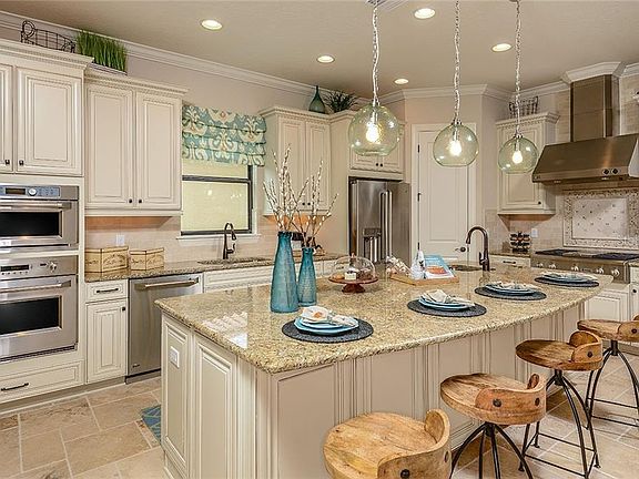• Interior Features: Eating Space In Kitchen, Master Bedroom Downstairs, Open Floorplan, Split Bedroom, Stone Counters, Walk-In Closet(s), In Wall Pest System, Tray Ceiling(s)