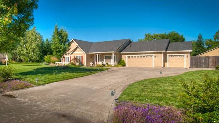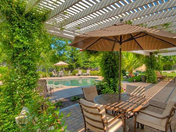 No stone has been left unturned! This lovingly and meticulously maintained home makes this oasis better than new! From the moment you walk through the front door you will feel the peace and serenity. Cathedral ceilings, canned and spot lighting, plant shelves, crown moldings, tasteful murals and wall to wall bookshelves/entertainment center are just a few of the many fine appointments in this beauty. Desirable floor plan features the 4th bedroom separate from the rest. The 3rd full bath even has a door to the pool area. Every thought has been given to the design of the backyard making it perfect for entertaining. Meander along the Redwoods, pick grapes from the mini vineyard, or plant in the detached, cozy Potting shed (could easily be an artist studio). Splash in the pool or sit on one of the three built-in pool benches and be mesmerized by the melodic wall falls. There is also a 1200 sq. ft. detached finished shop with skylights, ceiling fans, storage room and power. It is so clean you could almost eat off the floor! There is also ample parking for an RV plus a possible boat. This property has everything you have ever wanted!