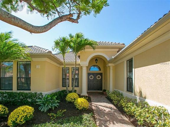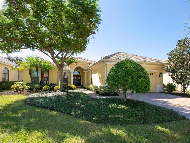 This beautiful Neal built home in the popular maintenance free Siena neighborhood welcomes your approach with a paver drive, tree shaded walk-way and a double door entrance. Upon entering, you will be impressed by the light and bright open floor plan, the polished wood floors with 5 1/4" baseboard trim throughout, the abundance of recessed lighting, volume tray ceilings and a multi room speaker system. The chef in your family will appreciate the wonderful kitchen which offers a gas stove, stainless steel appliances, granite counters with tile backsplash, cabinets with glass doors and staggered heights, under cabinet lighting, a center island and a dining area with a bay window. The spacious owner's retreat provides 2 walk-in closets, french doors which open to the lanai, dual sinks with a make-up counter, a garden tub and a separate shower with attractive tile. Enjoy time with friends and family on your screened and covered lanai while using your saltwater pool and spa. Lakewood Ranch is a master planned community that offers a variety of optional amenities including country club membership, 3 private golf courses, tennis programs, fitness facilities, parks, miles of trails and much more. The wonderful Florida lifestyle awaits you!