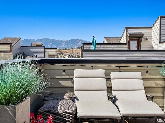 Framed by sweeping mountain views from a fully furnished rooftop deck, 13849 Del Corso Way delivers a rare opportunity to live above it all in one of Broomfield’s most desirable locations. From quiet mornings watching the sun rise over the Rockies to evenings spent entertaining under open skies, this expansive rooftop space sets the tone for a home defined by elevated living—both literally and in lifestyle. Thoughtfully constructed by Meritage Homes, a leader in energy-efficient building and sustainable design, this 4-bedroom, 4-bathroom residence spans 2,130 square feet of refined interiors, intuitive upgrades, and smart functionality. An entry-level en-suite bedroom provides flexibility for guests or remote work, while the main level offers seamless open-concept flow between the kitchen, dining, and living areas. Step out to a covered patio for year-round indoor-outdoor connection. The kitchen features all-new, high-end appliances, ample storage, and understated finishes that reflect the home’s clean, modern aesthetic. Upstairs, custom closets and automated blinds elevate everyday routines, while the finished garage—with EV charger, built-in storage, finished walls, and upgraded flooring—adds everyday convenience. Permanent architectural holiday lighting, a well-appointed mudroom, and low HOA fees reflect thoughtful attention to both form and function. Directly across from a neighborhood park and just minutes from Flatiron Crossing, regional transit options, and miles of trails, this residence is perfectly positioned for effortless Front Range living. But it’s the rooftop deck—with its panoramic views and exceptional livability—that truly defines this home’s appeal. A rare offering with lasting impact, 13849 Del Corso Way is energy-conscious, design-forward, and uniquely Colorado.