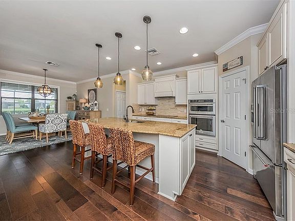 WOW! This is a spectacular find. Most popular Summerwood floorplan with 2nd floor. Spacious extended pavered lanai, heated saltwater pool and spa, overlooking gorgeous water views & tropical landscaping with a full southern exposure for miraculous sunsets. Dining area and great room framed by a pocket slider leading to the outdoors, open floor plan with engineered hardwood & crown molding in the main areas, gourmet kitchen with granite counters, upgraded cabinets, back-splash, and stainless steel appliances. Loft upstairs great for game day, guest quarters, multi-functional space with 5th bedroom and full bath too. This home has the security of hurricane screens on the lanai and accordions on 2nd floor, & is situated in a quiet construction-free area of the community. IslandWalk offers world-class amenities including a fitness center, movement studio, resort and lap pools, sports courts, plus the benefit of a full time Activities Director who organizes special events and group outings. Designed w/ the outdoors in mind- walking paths and bridges flow throughout the community amidst the tropical landscape. Located minutes to Manasota Beach, Venice Beach, shopping, and Venice Downtown with its quaint shops, restaurants, and theaters.