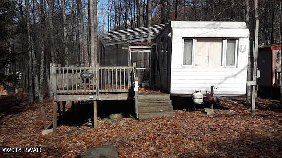 LEVEL CAMPSITE WITH A CLASSIC MOBILE HOME FROM THE 50'S WITH A SCREEN ROOM AND DECK ACROSS THE STREET FROM 19 SQUARE MILES OF STATE FOREST. PARADISE.