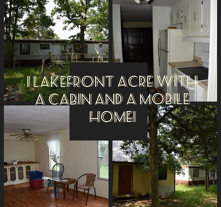 ONE LAKEFRONT ACRE WITH A CABIN AND A MOBILE HOME!! 1978 Single Wide 924 SF with 2 bedrooms & 2 baths. Big Living/Dining room with built in Buffet cabinet. Galley kitchen and separate Family Room. Master bedroom with a bath. Second bedroom, another bath and a laundry room, a nice sun room and a deck that needs work. Peek-a-boo view of the lake, close by and gentle to the water. Nice winter view. Little cabin next door was a guest quarters, main room with kitchen counter, small bath, sleep in the loft. Both on 1 Level acre with nice houses on either side. Easy to get to, fast trip to Forsyth. Two houses, lakefront lot, Both are in fair shape, Need fixing up but great for the price.