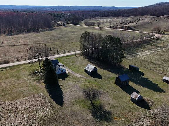 43.41 acres of rolling hills, beautiful trees. Wide open spaces near the home & multiple out buildings. Farm house is waiting for your personal touches. Selling AS IS. Home is basically at the STUDS so you can complete it the way you want it.