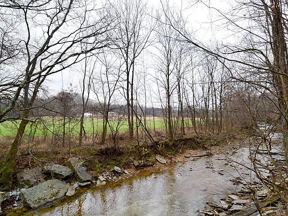 Country cottage set on almost 6 gorgeous acres. Beautiful setting! Creek at rear, covered front + rear porches, small storage shed (needs work). Well and city water. Replacement windows, new water heater, new paint and some new flooring, new stove + refrigerator, new heat pump, some new plumbing + insulation.