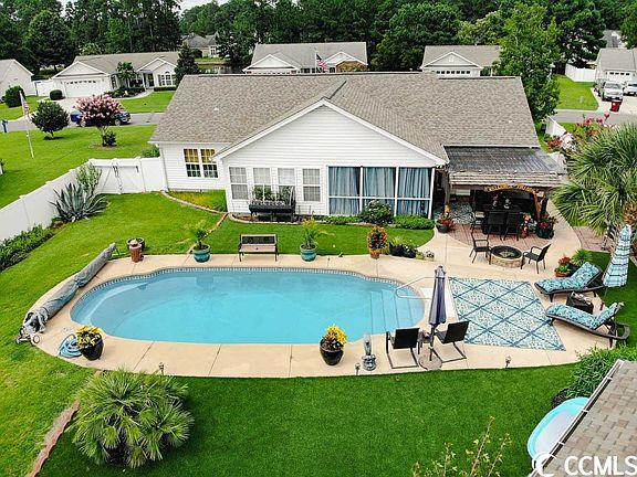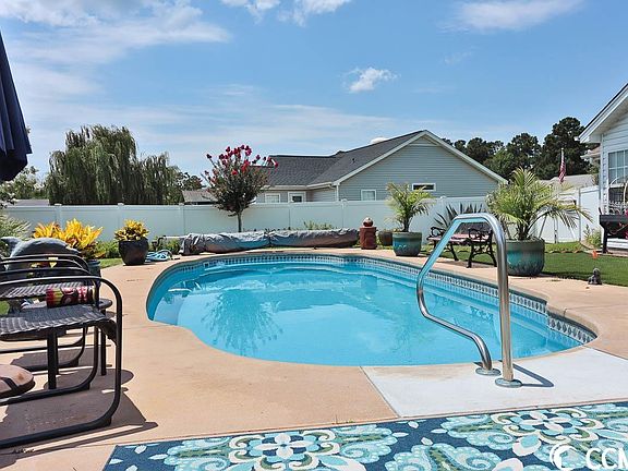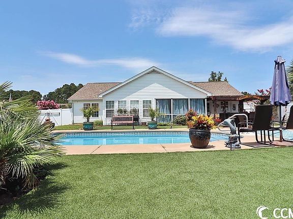 Welcome to your dream home in the desirable Castlewood community of Conway! This stunning 3-bedroom, 2-bathroom residence offers a private oasis for a backyard featuring a SALT WATER INGROUND POOL with a 2021 HOT TUB and the added advantage of NO HOA fees, NEWER ROOF and NEWER HVAC. As you step inside, you'll be greeted by an open and bright living room that seamlessly flows throughout the rest of the home, flooded with abundant natural light. The stylish kitchen boasts modern stainless-steel appliances, elegant leathered Quartzite countertops, a convenient breakfast bar, a serving bar, a cozy breakfast nook, a pantry, and ample cabinet storage for all your culinary needs. The master bedroom is a true retreat, featuring Tray ceilings adding an element of elegance, and a spacious walk-in closet to accommodate your wardrobe. The master bathroom offers a vanity for your convenience, a walk-in shower, and a relaxing tub to unwind after a long day. Additional highlights of this charming home include a separate laundry room and a bright Carolina room where you can enjoy the surrounding views and tranquility. Step outside, and the allure continues with a delightful front porch where you can soak in the sights and sounds of the friendly neighborhood. However, the real gem of this property is the breathtaking fenced-in backyard. Begin your outdoor experience with a screened-in porch that allows you to enjoy the outdoors in any weather. Continuing further into the backyard, you'll discover a fantastic patio area, complete with a hot tub and bar, perfect for hosting gatherings or simply unwinding at the end of the day. And for those sweltering summer days, take a refreshing dip in the sparkling pool, making this backyard a true oasis. Keeping maintenance in mind, the backyard features artificial turf, ensuring that it remains pristine with minimal effort. Plus, a large shed wired with electricity provides ample storage space for all your belongings, keeping the property tidy and organized. Situated between 501 and 544 in Conway, this home offers excellent access to Historic Downtown Conway, The Conway Riverwalk, Coastal Carolina University, and is just a short drive away from the beach, The Intracoastal Waterway, fantastic golf courses, shopping centers, delectable dining options, and a plethora of entertainment choices. Do not miss out on this opportunity to own your dream home! Book your showing today!