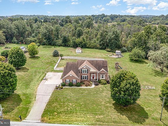 Beautiful brick home sitting on almost 2.5 acres of land. Walk along the lovely landscaped walkway to the front door and step inside your next home. The 2 story foyer with open curved staircase makes a grand statement. To the right is an office or den flanked by pillars. To the left is a formal dining room with chair rail and crown molding. The family room has a gas fireplace, and is open to the 2nd floor balcony. Sitting off of the family room is an extra room currently used as a bar area but it could easily be used an office since it has pocket doors for privacy. The family room is open to the kitchen and has an L-shaped island, granite countertops, lots of cabinets for storage and double wall ovens. There is even a bright and cheery sunroom off the kitchen. The first floor owners suite is huge and has double walk in closets and the en-suite has 2 sinks, corner soaking tub, 2 linen/storage closets and shower stall. 1st floor laundry and half bath finish of the main floor. Upstairs, there are 3 nice sized bedrooms, and another full bath. The lower level is currently set up as a game room, but you have the ability to section it off into different areas. Out back there is a great deck and this part of the yard is fully fenced. Beyond the fencing is a gardeners shed and a garden with planting boxes. The Big shed for yard all of your yard equipment conveys. The home also comes with a brand new furnace and a New roof to help ease your mind for years to come. Yes, your dream home is here....don't wait to make it yours!