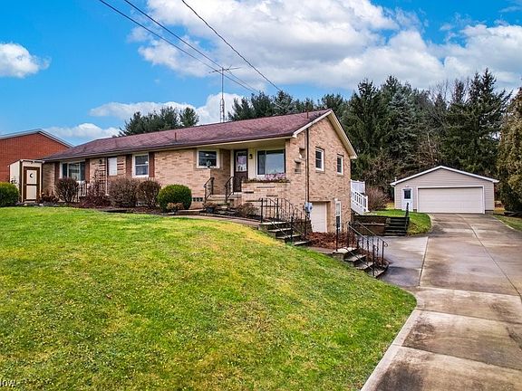 This spacious four-bedroom brick ranch is situated on a generous .77-acre lot. The property boasts a large, detached garage with a wood-burning fireplace and electrical, along with an attached one-car garage providing convenient access to the lower level. The main floor has three bedrooms and a full bath, as well as an updated kitchen and dining room. A sizable formal dining room, with beautiful hard wood floors that can double as a family room if you would like. An updated ventless gas fireplace serves as the centerpiece of the living room. This room offers access to both the front of the home porch and the large back deck. Under the carpets is the original wood flooring. There are two sheds on the property for extra storage. Landscaping has been beautifully updated and maintained. The finished walk-out basement includes a spacious bedroom, a living room, and a full bathroom. A new furnace and air conditioner with a 10-year transferable warranty were installed in 2023. The basement has recently been waterproofed, and nature stone flooring installed. Upstairs, a ventless gas fireplace serves as the centerpiece of the family room. This home won't last, get your showing scheduled today!