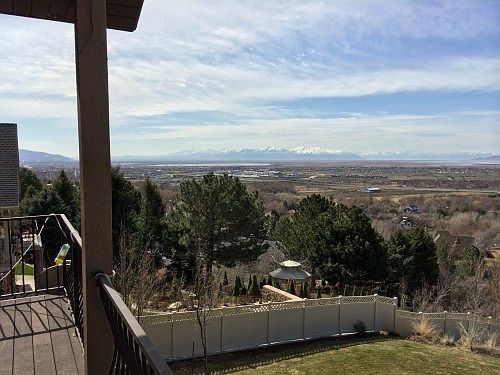 Complete info: http://1385ncomptonrd.AgentMarketing.com - Absolutely gorgeous, custom built rambler on the east bench of Farmington. Unobstructed, 170 degree view of the Great Salt Lake from the 39' x 19' covered deck along the back of the home. The Wasatch mountains and the Bonneville Shoreline Trail are practically in your front yard. Beautifully designed kitchen with granite countertops, island, stainless appliances including double ovens, farm sink, cherry cabinetry, large pantry, pendant lighting. Bay window expands the kitchen dining area with view of the lake. Master bedroom suite with cove ceiling, walk in closet, walk out to deck, and that incredible lake view from your bed. Master bath with separate shower & tub, double sinks. Main level laundry room with utility sink and craft storage space. Office with glass french doors and transom window off the main entry. Plantation shutters and oil rubbed bronze fixtures throughout. Views from every level of the home, front and back. Storage galore.