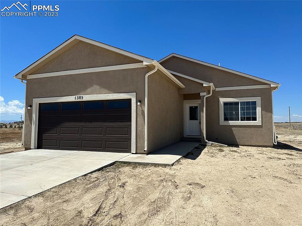 Move-in ready. Better than new! Very VERY well taken care of home! Family friendly and retiree friendly. Enjoy this 2021 Ranch Style home on an over one acre lot! Main level master bedroom and two more bedrooms on the main. Popular open floorplan includes vaulted ceilings with a center kitchen island as the focal point, stainless steel appliances, dining and formal living room greet you as would walk in the front door. Oversized master bedroom with a private full bath and huge walk-in closet. An additional full bathroom is on the main level. Off the kitchen is an access door to the backyard with a private patio. Partially finished downstairs comes with a finished bathroom and has unfinished space for a family room and a 4th bedroom. On demand hot-water heater. Easy access to North I-25 and the Purcell Exit to get to Colorado Springs. Close to PW grocery, school, and restaurant amenities.