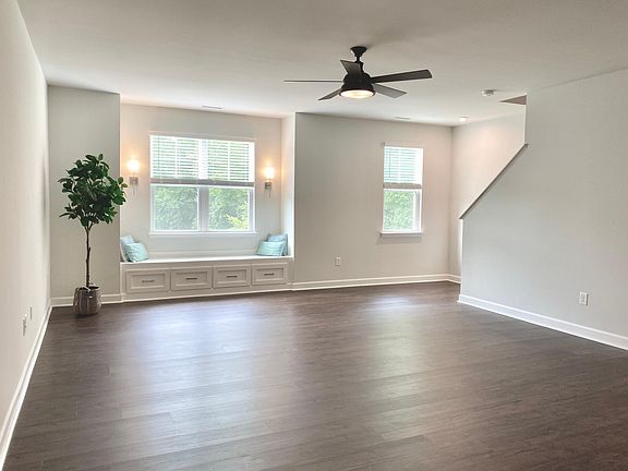 Amazing garage town home located near historic downtown Apex! Walk to all of the festivities that downtown has to offer. 3 beds w 3.5 baths, and optional flex space that can be used as 4th bedroom. Large covered patio and porch for enjoying the outdoors. Large bedrooms, and a custom walk in closet in master! Modern/designer finishes including granite in kitchen, tile in master bath, popular EVP flooring in main living areas.