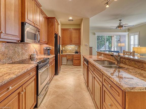 Location, Location, Location...this beautifully maintained 2 bedroom, 2 bathroom, Coach Home is ideally located in North Naples at US 41 and Immokalee Rd, close to many beaches, a large variety of restaurants and shopping. Close to Traders Joes, Mercato and Waterside Shoppes. The home includes many upgraded design features including crown moldings, porcelain tile floors in main living area, built in desk in kitchen, breakfast bars, wood panel refrigerator and dishwasher to match cabinets, granite counter tops, plantation shutters and hurricane impact windows and doors. Spacious Master Suite features walk-in closet, private bathroom with his and hers raised wood vanities with marble counter tops, large walk-in shower and separate tub. Amenities include a private Clubhouse with catering kitchen and grilling area, fitness center, media room, large outdoor sitting area overlooking the resort style heated pool and spa.