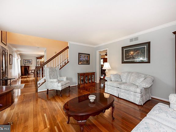 Welcome home to 1385 Roberts Road, located in the highly sought-after Twin Ponds Neighborhood. This exquisite home exudes refinement and elegance and is situated on a spacious well groomed lot that backs up to lush greenery. As you enter the home you'll be greeted by a stunning two-story foyer adorned with gleaming mahogany hardwood floors that extend throughout the front of the home. To the left of the foyer you'll find the handsome and elegant dining room that features shadow box trim, chair rail and crown molding that add a touch of class and distinction to your dining and entertaining experiences. The formal living room is bathed in natural light further enhancing its appeal which also boasts abundant trim and refinement. The updated and bright eat-in kitchen is a culinary enthusiast's dream equipped with dark fingerprint-resistant stainless steel appliances, gas cooktop, beautiful cabinetry, ample sparkling granite counters and a center island. Additional features include custom tiled backsplash, tiled flooring, a coffee/drink bar and a convenient pantry for all your storage needs. The cozy family room provides the perfect space for relaxation and gatherings featuring a gas fireplace with granite surround and mantel, upgraded carpeting all bathed in abundant natural light. For added convenience the bright well-sized laundry room is located just off the kitchen and offers a utility sink, closet space, and easy access to the two-car attached garage.The convenient powder room completes the main floor. The second level features the main bedroom suite featuring composite wood floors, a walk-in closet and a dressing area with a vanity table.The recently remodeled main bathroom is a true oasis that features an incredible custom shower with frameless glass partition, beautiful in lay tile and marble accents as well as a pair of tiled benches and multiple shower heads to pamper you. The bath also has dual vanities with sparkling marble counters as well as a new comfort height toilet, a feature in all the bathrooms of the home. The remaining three bedrooms on the floor are all bright and generously sized and share a full hall bath. The finished walk out basement offers a beautiful space with recessed lighting and an additional gas fireplace as well as sliding doors to the rear yard. The utility room offers abundant storage and has easy access to the upgraded high efficiency HVAC system with an electrostatic filter and humidifier, along with the separate efficient gas hot water heater. The added whole house water softener keeps everything sparkling. The backyard is additionally accessed from the newer sliding doors in the kitchen that open to a new composite TREX two tiered deck with built in lighting that has stairs to the yard and to the pool and water fountain. Relax on the deck under the electric roll out canopy that provides instant shade. There is also a convenient shed for your yard and pool equipment. So much to love about this house and neighborhood. Convenient to major roads Rts 100 and 422. Come see this incredible home today!