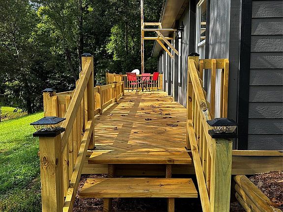 Convenient to Lake Lure, shopping, and grocery. Well maintained lot with room for outdoor activities. Most electrical is complete, can lighting has been installed and drywall is done. Needs kitchen and bath completed, plumbing. Home does not have HVAC. Home does not have a well. Recent survey shows acreage as 1.03 acres.