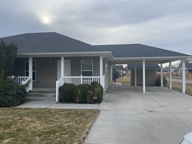 Super clean, newer duplex. Nice, open floor plan with living, kitchen, and dining areas. Nice sized bedrooms. Large off-street parking area, covered carport, and separate storage shed. Huge yard on irrigation well - landscape maintenance is included in rent. Located on a dead-end street. Background and credit screening is required as well as rental references.