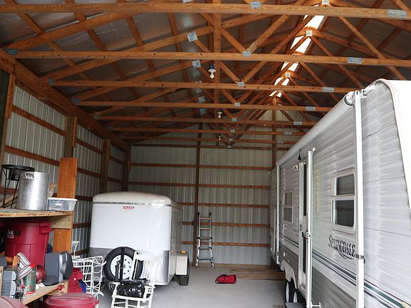2.2 acres of land with very nice 32 foot by 40 ft pole barn with high ceiling ready for your toys and shop. There is a 5 inch concrete floor and 100 amp electric services in barn. The site is wooded wit mature pine trees and would make a nice home site.
