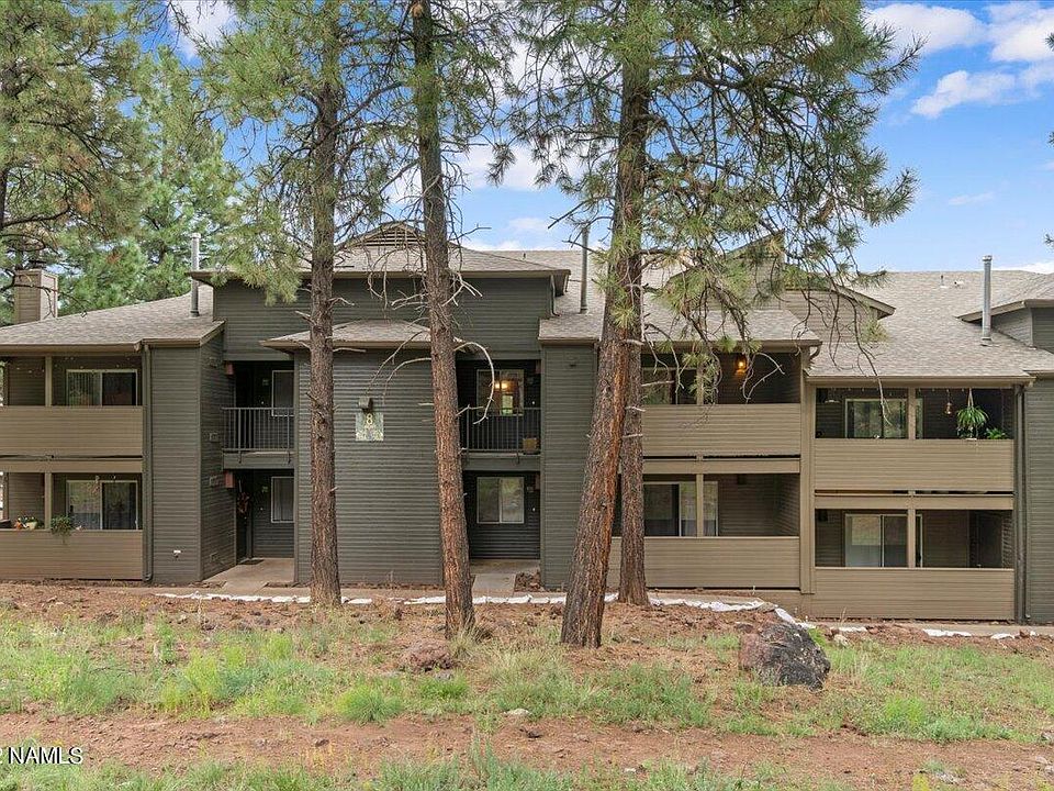 This second-floor turnkey ready condo offers unparalleled convenience and tranquility while being tucked away for additional privacy. Enjoy a kitchen-great room open concept that wastes no space and connects the living spaces brilliantly for comfort, conversation and dining. The sliding door in the living room leads you to the covered deck, where you can enjoy the serene surroundings of the forest. The sizable primary bedroom has an en suite for ease. The location of this condo is situated in close proximity to NAU, downtown, and more. Furnishings are available in a separate bill of sale!